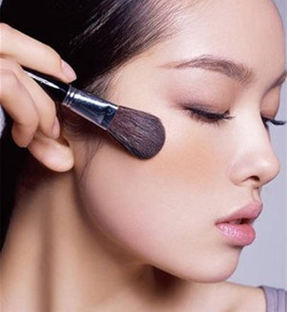 掃陰影時應該集中在臉部輪廓外線:從耳后開始往下巴方向掃。淡淡掃過額頭(貼著發際線),鼻梁,廉價和下巴尖。為了防止你的臉看起來太“臟”或太“渾”,最后要用一個大好腮紅刷刷在蘋果肌上,在顴骨頂端上打上高光。