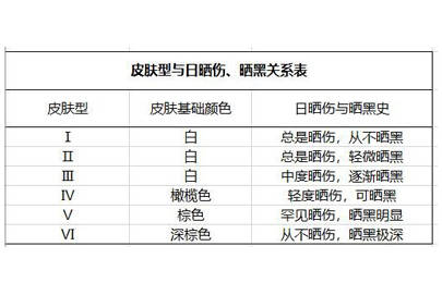 我們中國人大部分屬于Ⅲ-Ⅳ型的皮膚,膚色比較適中,也屬于相對不容易曬傷,也不容易曬黑的一類。